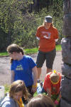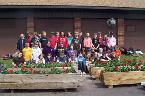 Photo above left Master Gardener Diane Fontechio teaching planting techniques to Norrie 4th