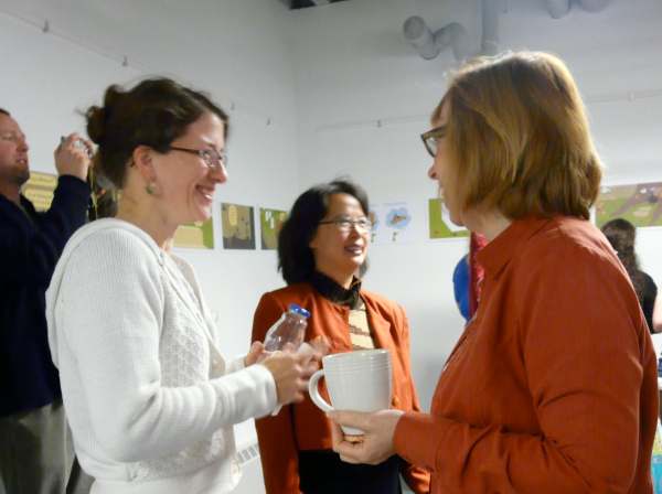 above Liz meets with gallery visitors. Liz
