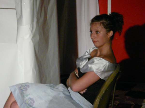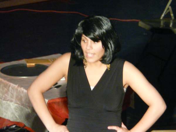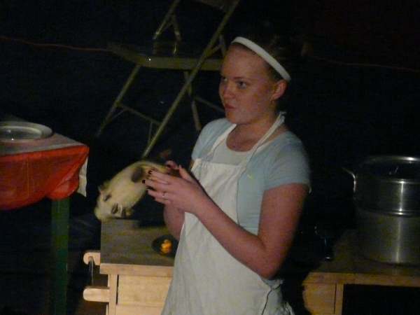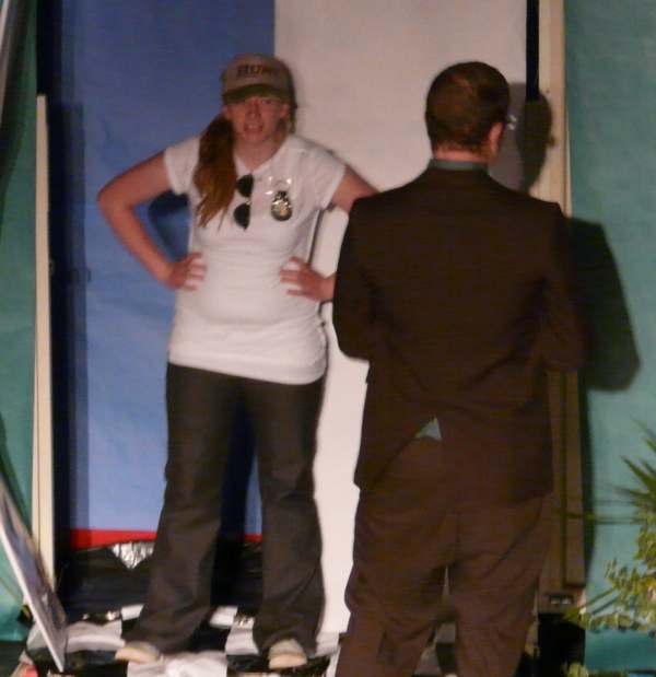 Mrs Peacock (left) played by Justine West,  Miss Scarlet (right) played by Laura Bunten