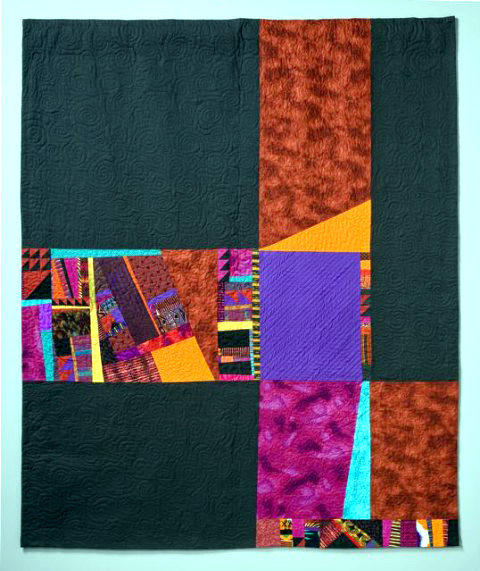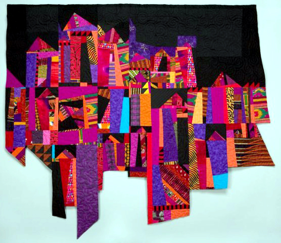 Hancock. Harris will present a lecture about her work at 7:15 p.m. The reception is free and open to the public. Refreshments will be served. Harris’s exhibit, “Improvisations,” is a collection of colorful, complex handmade quilts. It is on display through September 11, 2010. The dense layering of patterns and the repetition of materials that Harris employs in her non-traditional quilts and tapestries are evocative of the rhythms, energy, and movement found in African and African-American music, particularly Blues and Jazz. “I try to think of my work as the visualization of the music that inspires me,” notes Harris. |