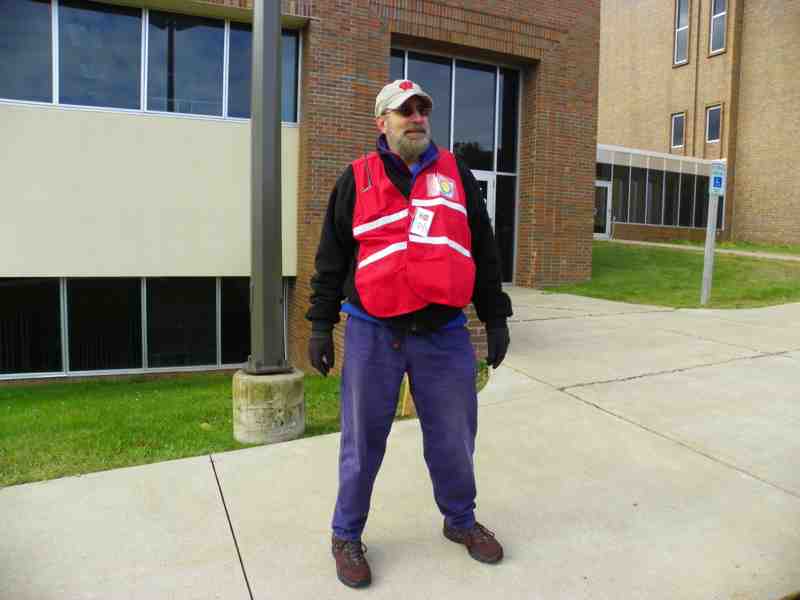 | above - left in red vest is Geneva Smiles, from Grandview Hospital, checking with the workers in preparation for the official opening at 10:00AM. |