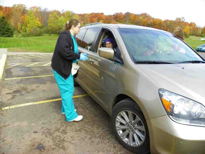 IRONWOOD TOWNSHIP - The GCC Lindquist Center was home court for the Community Flu-Clinic this Saturday. As surely the trees show off their fall beauty it is just as assuredly the onset of Flu season. Time to get immunized and our local health care providers are ready willing and able to help protect us against the Flu Bug. Pictured above Zona Wick prepares for next person at drive through service. |