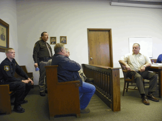 The Public Service Award is named after the late Oreste “Chip” Chiantello, who served on the Gogebic County Board and several other community and governmental positions. Each county board in the six-county western U.P. nominates its selection. This year Kangas was nominated by both Gogebic and Ontonagon Counties. The 2009 award recipient was Jim Saari of Gogebic County. The award is sponsored by the Western U.P. Planning and Development Region (WUPPDR) and Michigan Works. County Sheriff Matonich made an appearance at the Commission Meeting for the purpose of introducing the newly hired Deputy Josh Elais. Josh has been working at LV Watersmeet for three years and he is currently “Road Certified”. Matonich also advised the Commissioners of other staff changes being made, including the December 1st, retirement of Under Sheriff Bob Halvorson. The Sheriff’s staff changes are described in the video below. Also a second video of Under Sheriff Halvoson’s remarks appear below.