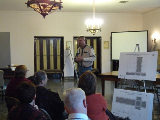 IRONWOOD - Friday evening the City of Ironwood held an information meeting that focused on the Streetscape program. The program was produced by Coleman Engineering, the company that is working on the program with City Manager Scott Erickson. It was hoped that downtown merchants and residents would attend the meeting and provide some positive feedback. The project is financed largely through a grant that the City Manager, pictured above, would like to see leveraged against the Huge Downtown Development Grant making up some of the City’s match for the $700,000 Grant. |