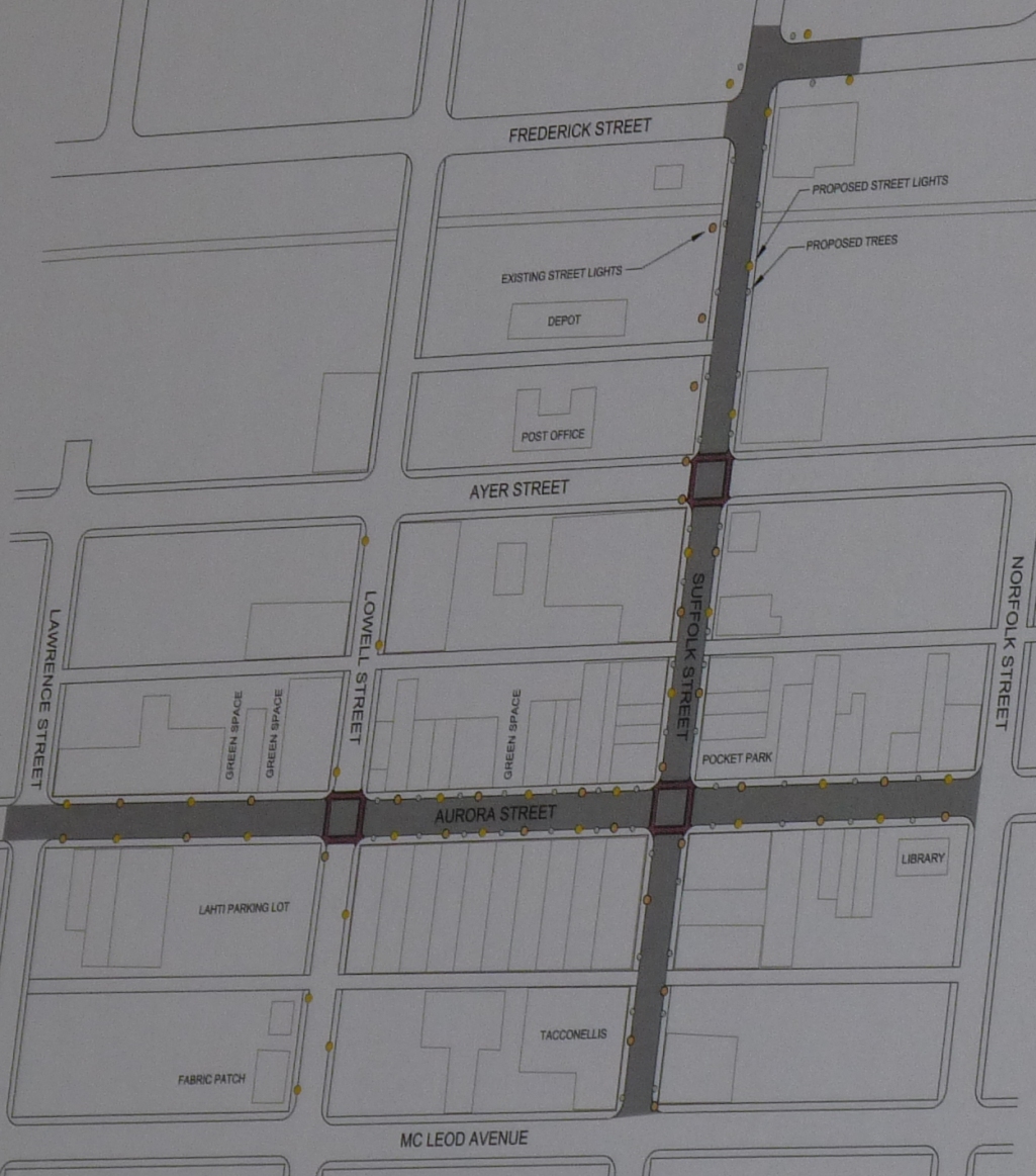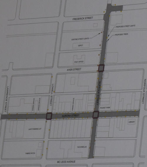 | Very few business owners showed up for the meeting and those that did, expressed their concerns about the plan that will cover Douglas and Aurora Streets. The additional lighting is too close to the street, making snow removal too difficult. The pavers will be also make walking and snow removal too difficult. The trees will also make snow removal too difficult. The benches seem to be ok, but who will take care of them or the flower planters? |