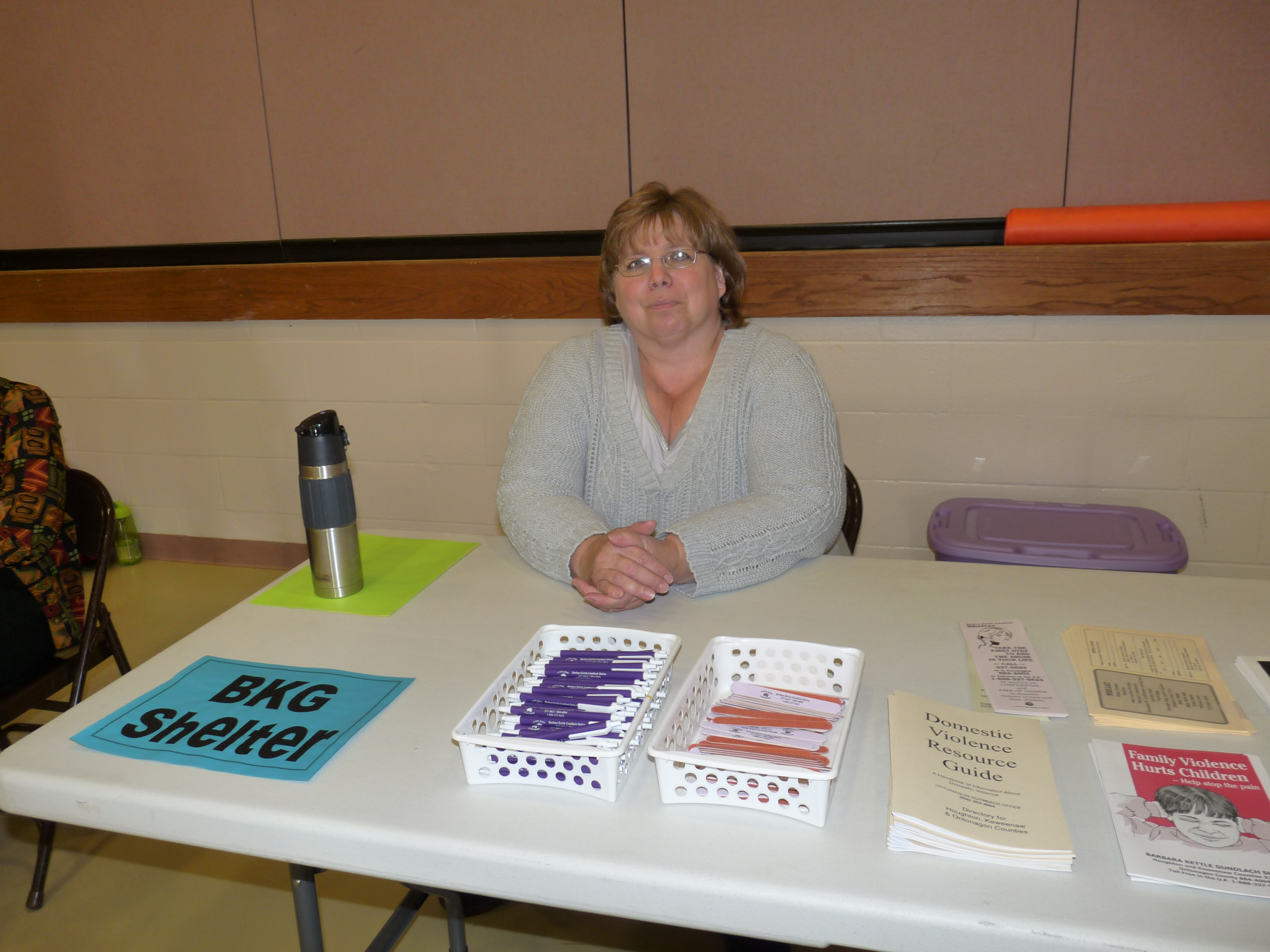 | Pictured above is Sue Guilbault from the BKG Shelter, an organization similar to Gogebic’s DOVE, helping victims of domestic violence. In Ontonagon County Sue will arrange to send those in need of protection to either Calumet or Ironwood. |