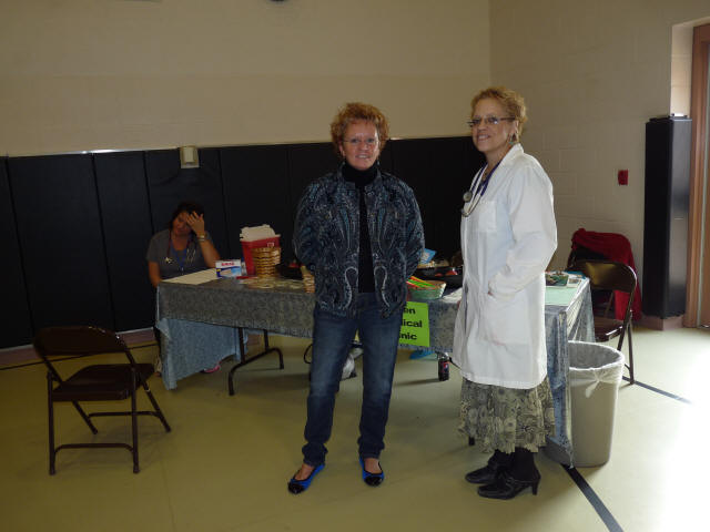 was $25 and was free to Medicare and Medicaid patients. Ewen has its own health and dental clinic, Ewen Medical-Dental Center. The center is funded through a federal grant. Patients are billed on their ability to pay. Pictured above is Rebbekkah Marasco, FNP-C. Rebbekkah was providing the Flu Immunization Shots. Standing to Rebbekkah’s left is Maggi Brown, who is the High School’s Secretary and the school's Go To Person. |