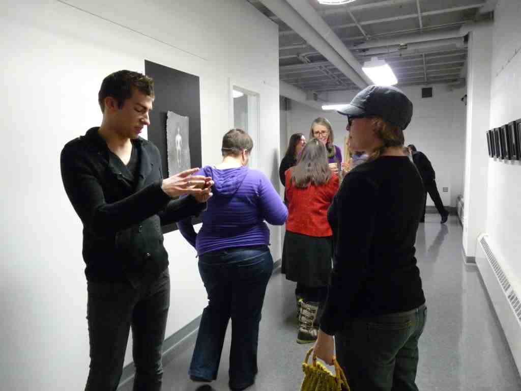 Reflection Gallery. Siegler’s exhibit "ContraPerspectives" opened on Monday, November 1st and will featured until November 27th. Jordan is a very talented young artist with a fantastic imagination; and like many young artists, he looks to use recycled material in his art. Siegler in his current exhibit has taken recycled “lint” and used it to create his fiber art. When he began his project he was frequently doing his laundry in order collect the lint. He soon discovered that he could not produce enough lint for his work and soon prevailed upon his friends to donate their lint for the cause. In his exhibit he has created 24 shadow boxes of fiber art, each representing one year of his life. Combined the twenty four pieces represent the meeting of his child being to that of his adult being; a melding of his twenty-four years of life’s perspective. Siegler says that the show was developed through his exploration of and meditation on two perspectives separated by time. His exploration of the child's perspective and the adult's perspective has melded a fascinating exhibition. “The lint pieces in this exhibit are a
