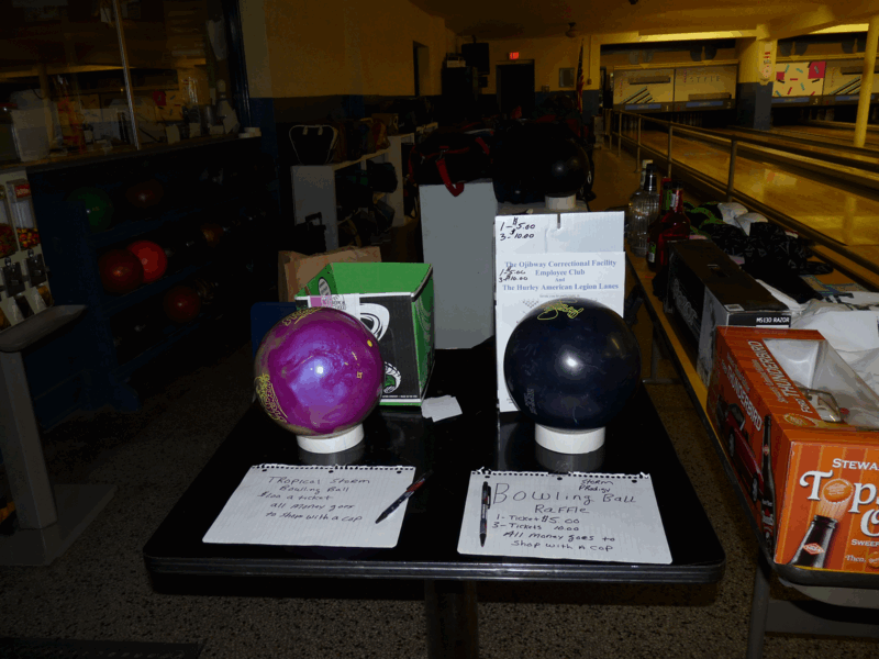 | In addition to the games, funds were raised by drawings for prizes. One prize was a $200 bowling Ball. |