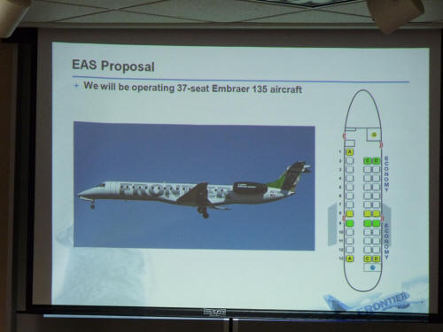 | Frontier if approved by the FAA will be flying ERJ 135 or ERJ 145 planes in and out of Ironwood. These planes carry 35 and 50 passengers, plus a flight attendant and equipped with a lavatory. Click photo above or a larger image. |