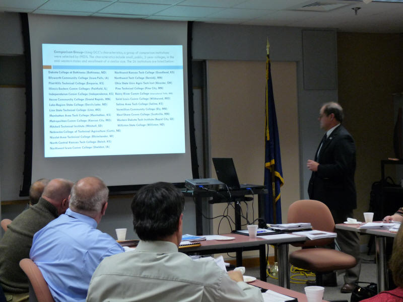 performer. According to President Lorenson, the high achievement depicted in the report will serve GCC well if or when state funding becomes allocated on a performance basis. Some of the data in the report that focuses on expenses is somewhat skewed, in that 19% of the 26 institutions in the report were domiciled in Minnesota and in that state some school services are performed centrally and not at the specific college. The characteristics of the peer group include small, public, 2-year colleges, in the Midwestern states and enrollment of a similar size. The enrollment figures used for GCC are somewhat larger than the average for the peer group. The unduplicated head count for GCC is 1.22 times larger than that of the peer group and total FTE (full time equivalent) enrollment that is 1.17 times that of its peers. Baring that in mind, GCC successfully awards Associates Degrees by 1.59 times that of its peers. The achievement for certificated students is even greater, 2.47 times the peer group. The report also covers grants loans and cost of tuition as well as net cost of attendance. Here again GCC performs better than its peers. From the 2006-2007 academic year to the 2009/2010 academic year, tuition costs have risen by 17.9% for the overall group, but those costs have risen only 11.2% for GCC students. On a net cost, tuition less grants or aid, the peer group’s average net annual cost is $8,475 as compared to $2,503 for GCC students. Click to view the full report In other action, December candidates for graduation were approved and will be invited to attend the Commencement Ceremony in May. A proposal for engineering work for the installation of a back-up generator on the Solin Business Building to support Institutional Technology was awarded to UP Engineers and Architects of Houghton, MI. The Board also confirmed the resignation of Monica Powers as the Dean of Student Services, effective November 3, 2010. Jeanne Graham, the college’s Director of Admissions and Public Information, has been appointed as the Interim Dean of Students Services, with Deans Guenard and Trzaska also assuming additional responsibilities in areas related to their assignments. |