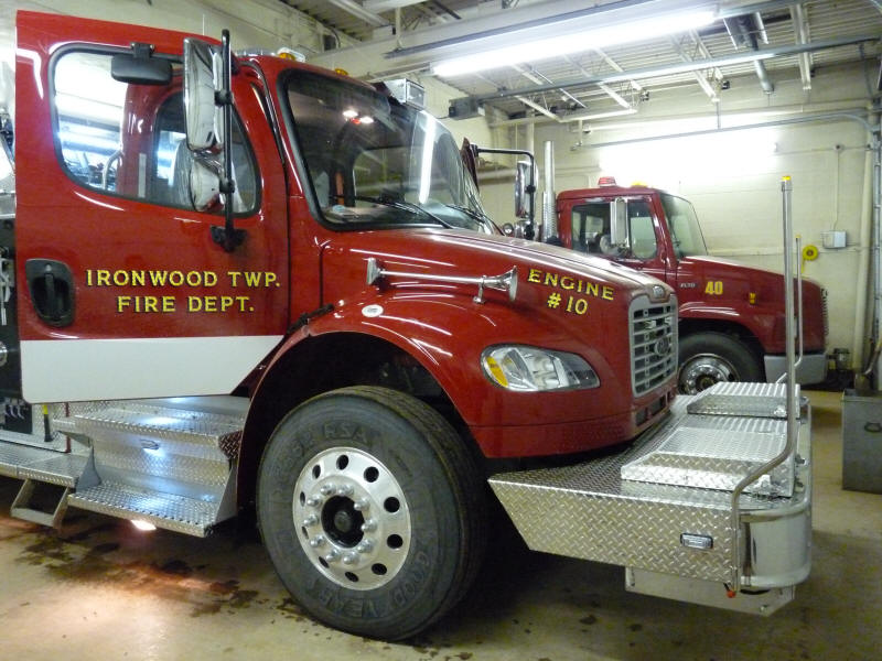 truck on its way to the Ironwood Township Fire Station. Monday, Ironwood Township Fire Chief Jamie Peite accompanied by two other firefighters, Josh Ludtke and John Baracovi drove to Appleton to receive delivery of the latest addition to the Township’s fire fighting arsenal.
