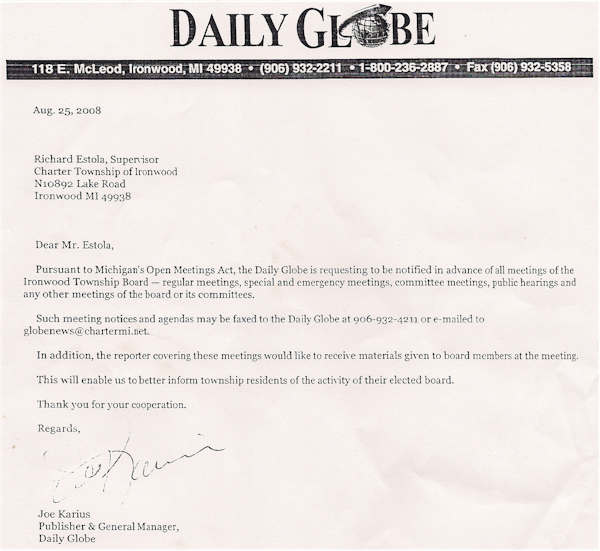 snail mail: P.O. Box 305 Ironwood, MI 49938