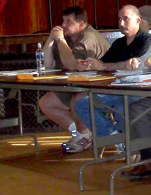 Board meeting two staff members, an industrial arts