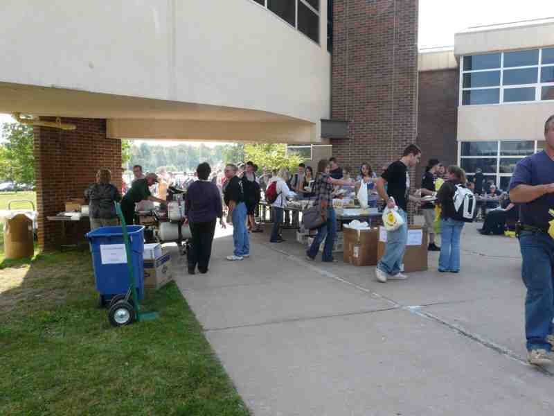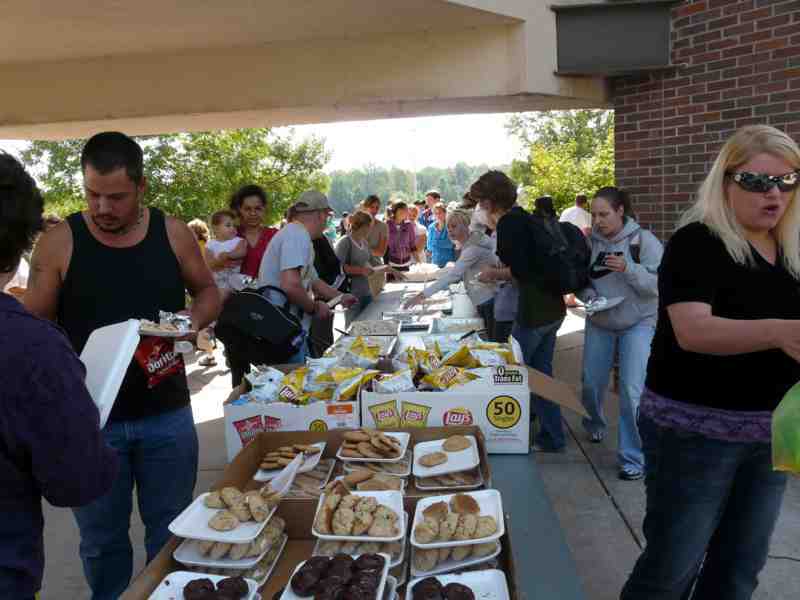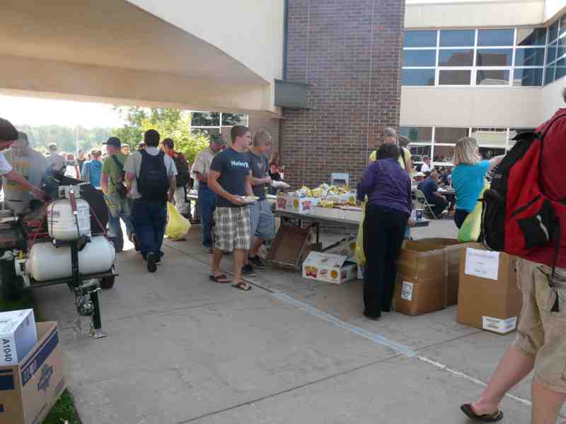 set up next to the food line where