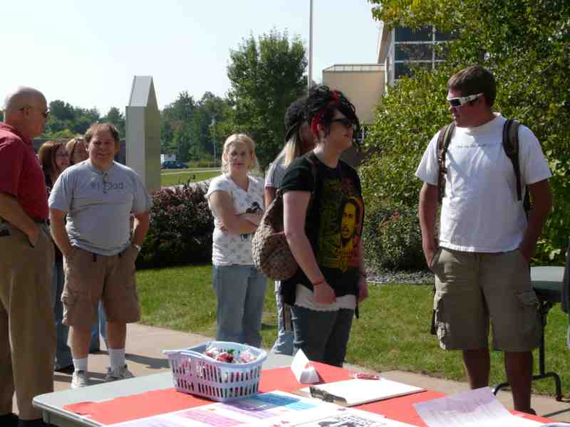 students were given handouts by vendors.