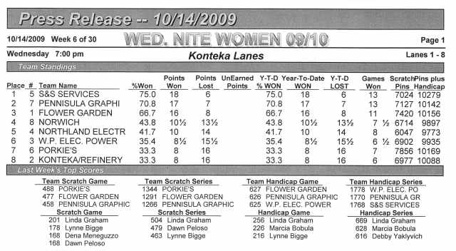 Wednesday Night Women's League saw a change in