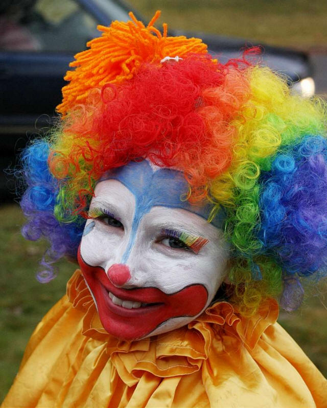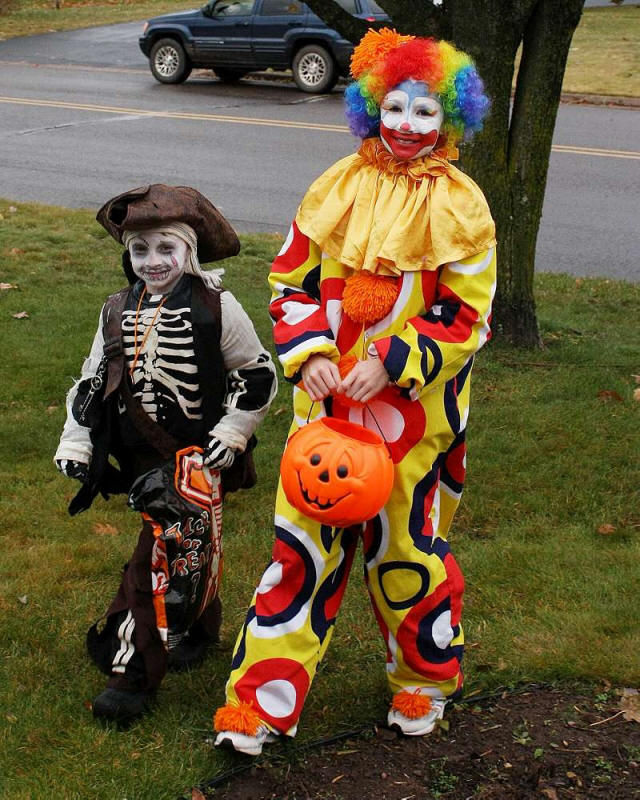 dressed as miners walking and riding