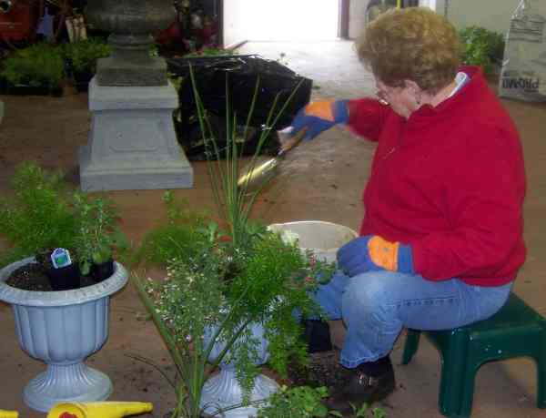 needed mulch, soil and fertilizer. After the urns were