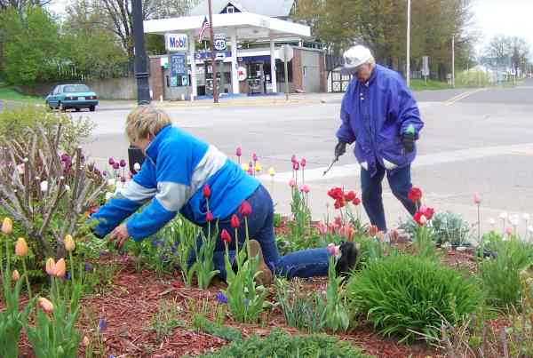 done on the flowers downtown. Volunteers are