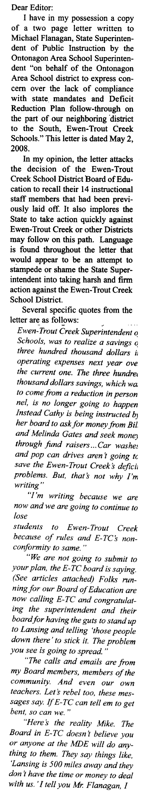 Ironwodinfo also contacted Bruce Mayle, Superintendent