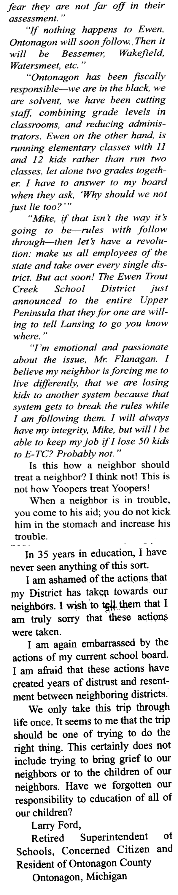 written by former O.A.S.D Supt. Larry Ford. In his letter
