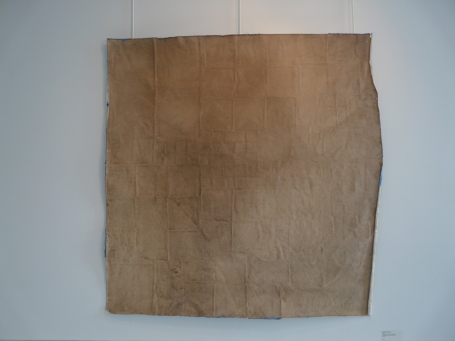 comprising nine five-foot-square canvas panels dyed vibrant yellow using