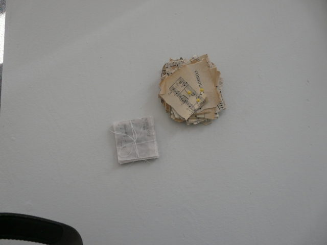 hand-made from 80-year-old sheet music; and “Aubade (Mnemosyne Sings),”