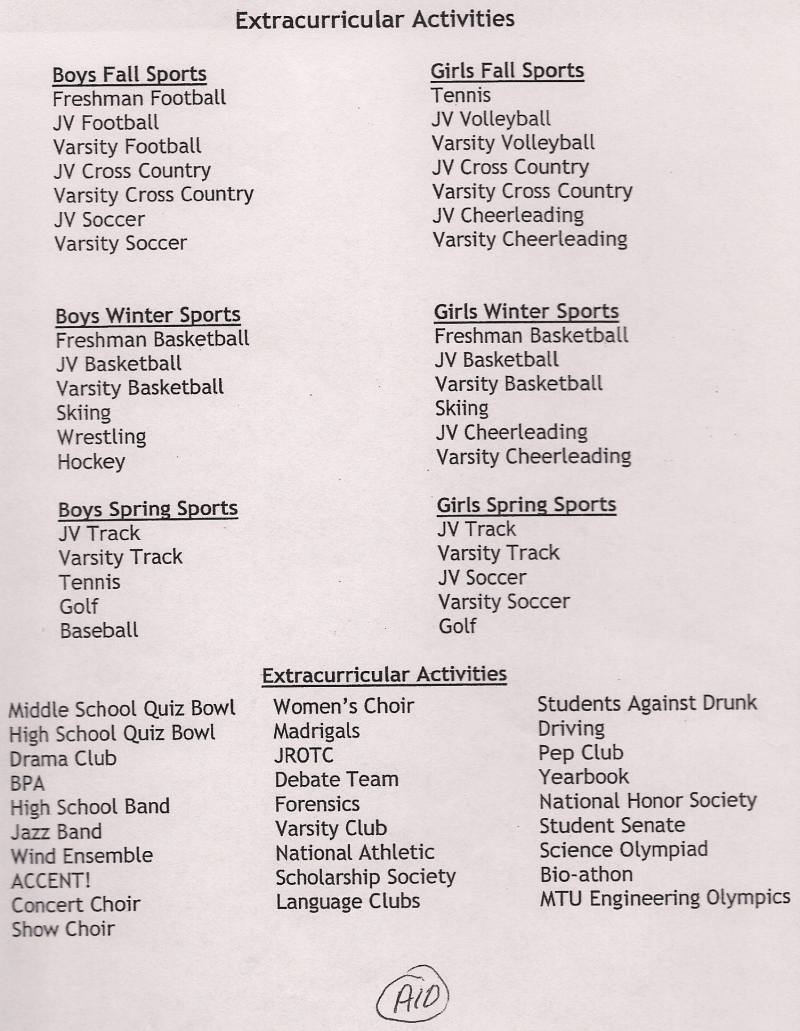 and other Extra-Curricular Activities look like?