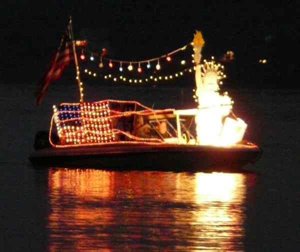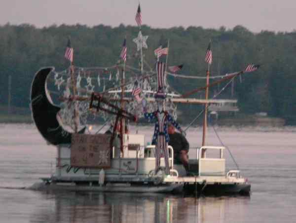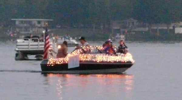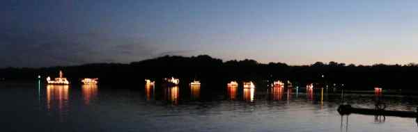 | At dusk boaters gather on Twin Lakes. At dark, the