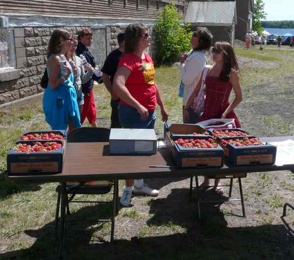 below, vendors sell fresh strawberries