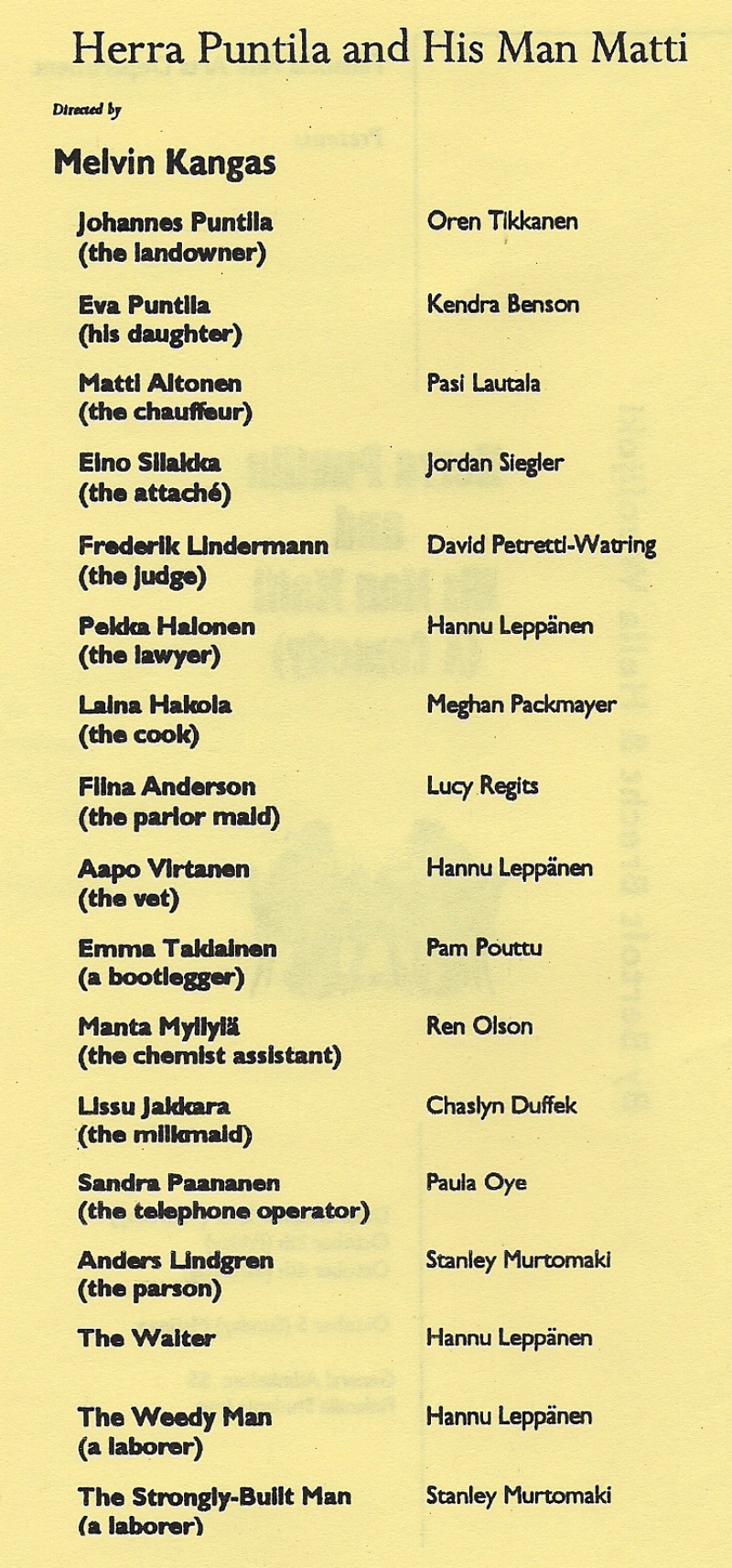 | Directed by Finlandia music and drama instructor Melvin