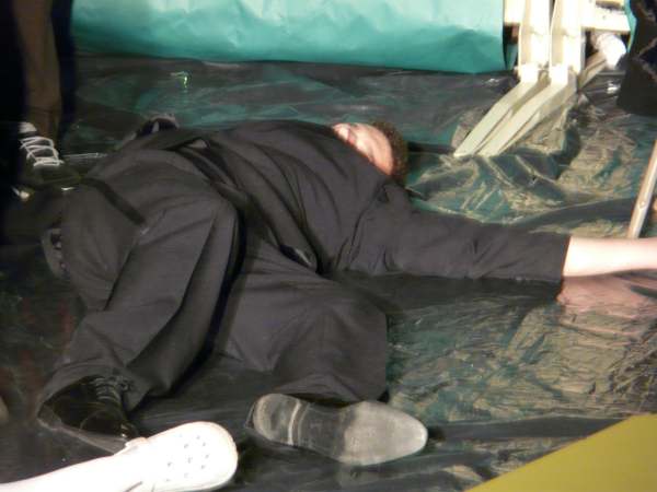 | Another body - Mr. Boddy (Jordan Hill) hits the dust. |