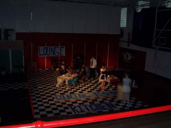 | The floor on one side of the gymnasium made up the stage for
