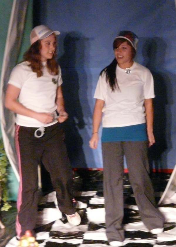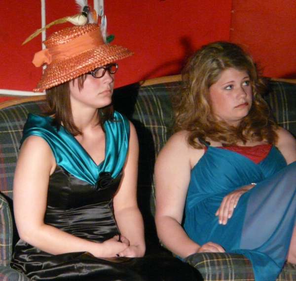 Mrs Peacock (left) played by Justine West,  Miss Scarlet (right) played by Laura Bunten