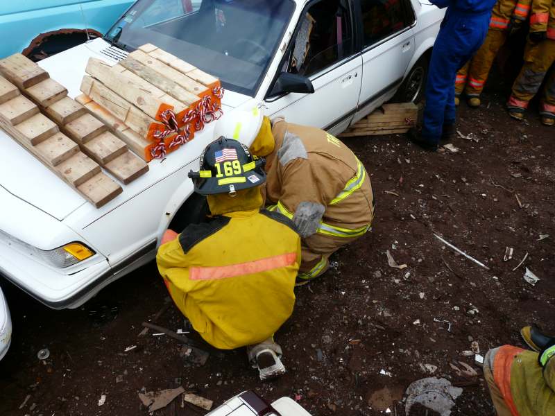 firefighters deflated tires and stabilized vehicles as would be