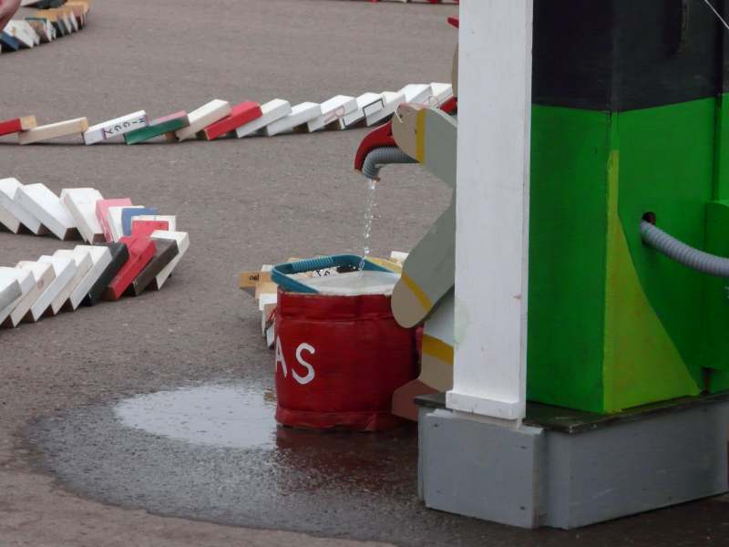 set into motion and pumped gas into two gas cans.