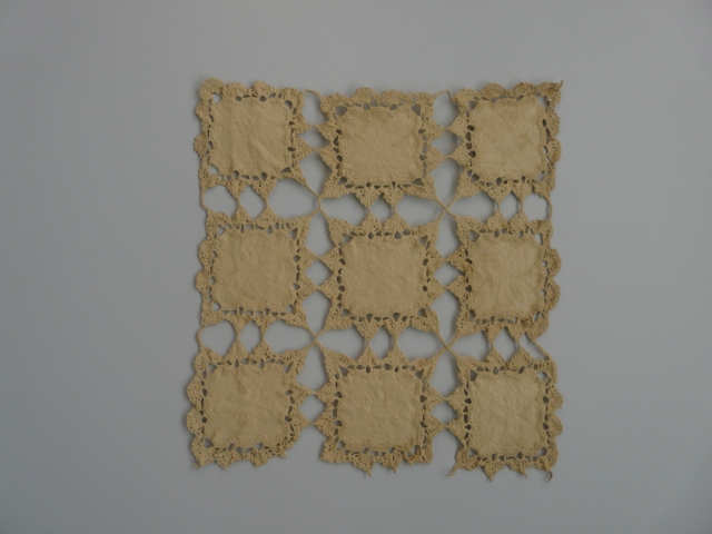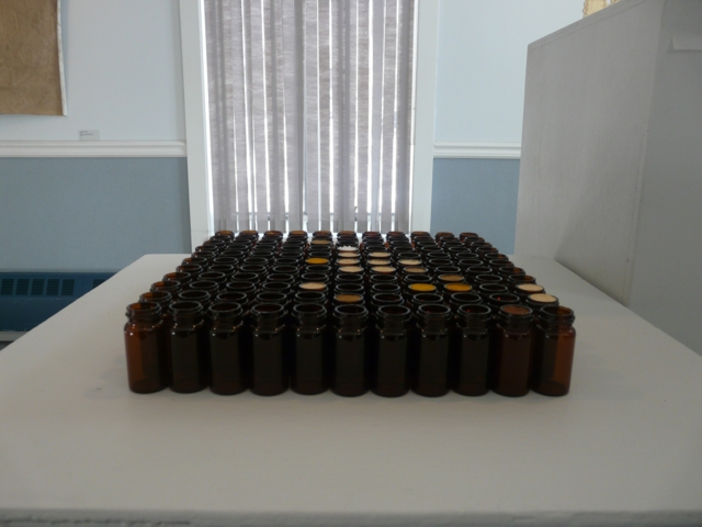 To enhance the meaning of the materials she uses, Steffy makes her own dyes and pigments from plants, nuts, and spices, which often have medicinal properties or applications beyond their common uses. Steffy states that the tediousness of the paint-making process, as with the stitching, sewing, papermaking, and other repetitive tasks required in her artwork, invests her even more deeply in her art. | ||