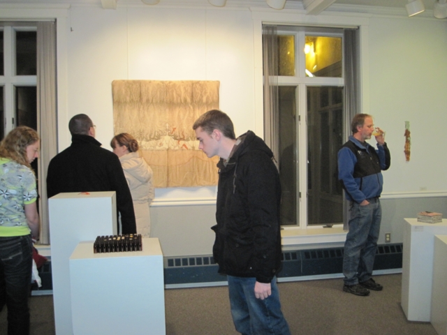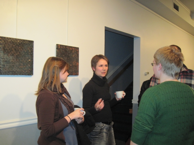 Hancock - January 21, 2010 Finlandia University is currently hosting an art exhibit at the Gallery, which is located at the Finnish America Heritage in Hancock. The month long exhibit which opened on January 11th features the work of Artist Melinda Steffy. Thursday evening the University hosted an opening reception for the Philadelphia Artist. Steffy gave a talk to the audience gathered there to view the exhibit. |