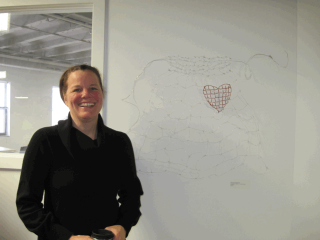 Carrie Flaspohler, director of the Finlandia University Gallery, stands in front of her art work. Carrie is another very talented artist at Finlandia. Little wonder why the School of Art and Design Students are so skilled. | |