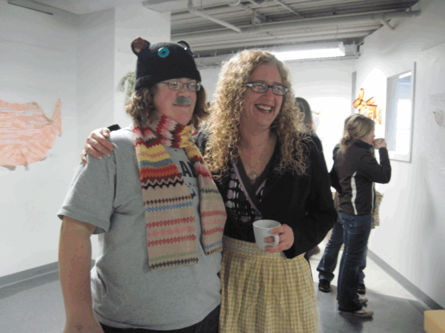 above - Lana Bosak, stands in front of her apron "Grilled Cheese Sandwhich". Lana's great artwork has been seen on our website several times in the past. We have been enjoying the work of this young Minnesota art student for some time and we will miss her art after graduation. | |