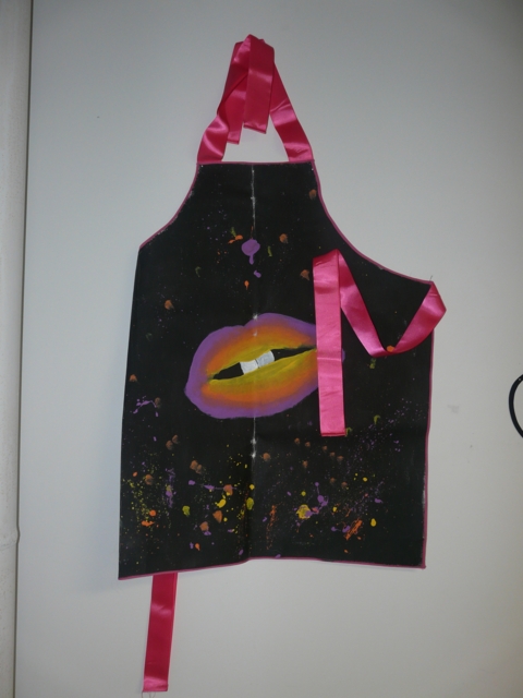 above - an apron created by Michigan artist Phyllis Norton titled "After My Stroke" | |