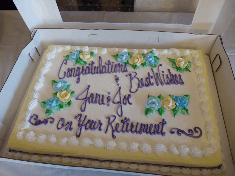 gathered to celebrate the retirement of two long time